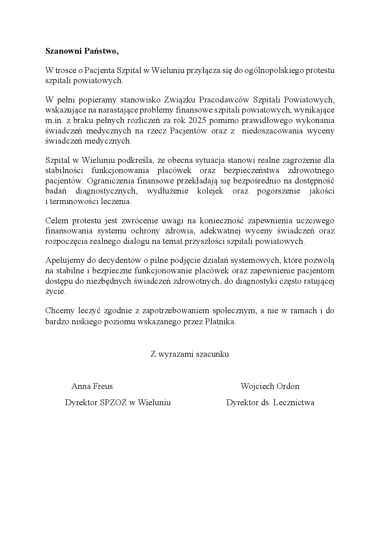 Samodzielnego Publicznego Zakładu Opieki Zdrowotnej w Wieluniu